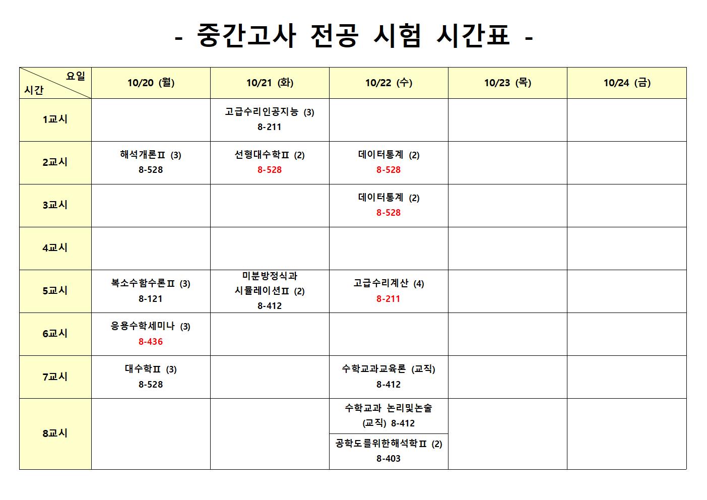 2025-2학기 중간고사 전공 시험 시간표 안내