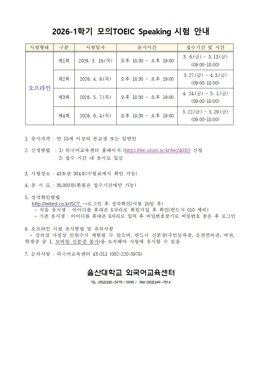 2026-1학기 모의토익스피킹 시험 안내